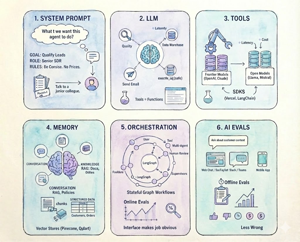 If you tell me the specific agent you want to build next, I can map this seven step structure to a concrete stack and architecture you could hand to an engineering team.